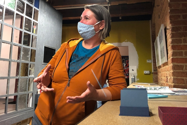 So haben wir beispielsweise die Standorte unserer Maschinen, auf die Abfolge der Sieben Kapitel (der rote Faden der Ausstellung) angepasst und den gesamten Produktionsprozess neu gegliedert. Dementsprechend haben wir eine neue Druckmaschine angeschafft, die neben einer verbesserten Sicherheit, störungsfreies Arbeiten und eine Qualitätssteigerung in der Produktion ermöglicht, die aber vor allem unter dem akustischen Aspekt, die Gleichzeitigkeit von der Demonstration einer Maschine, mit dem störungsfreien Abrufen des audiovisuellen Angebots der Ausstellung, ermöglicht. In die Ausstellung ist unsere Spendenbox integriert.